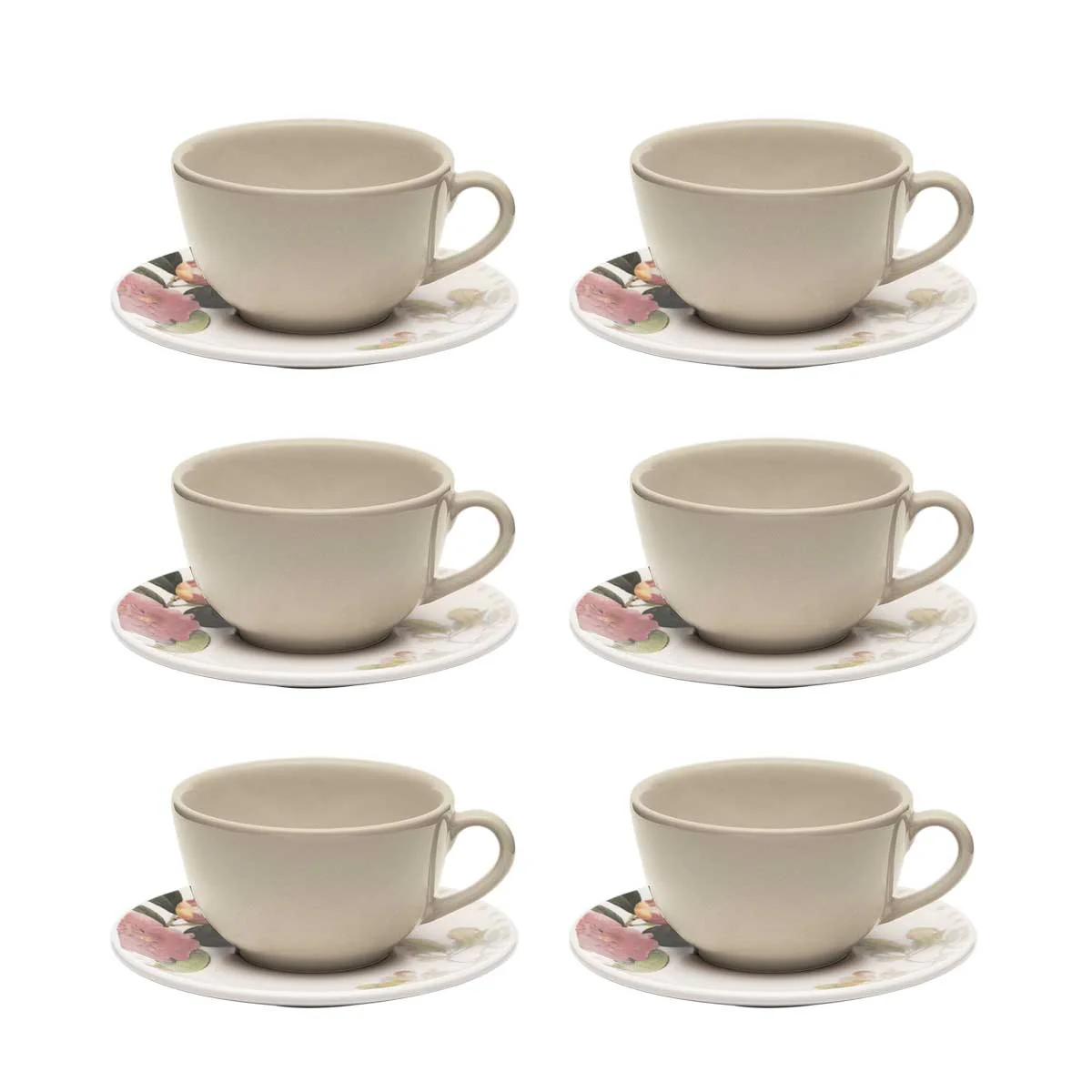 Jogo completo de 6 xícaras grandes com capacidade de 200 ml, acompanhadas de seus respectivos pires. Ideal para servir café, chá ou bebidas quentes em reuniões familiares e momentos especiais. O conjunto oferece praticidade e elegância para sua mesa, permitindo servir múltiplos convidados simultaneamente. Perfeito para presentear ou complementar sua louçaria.